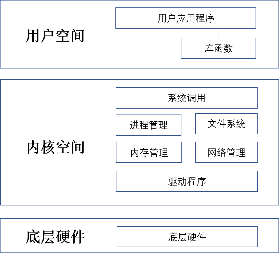 由上图可以看出,linux中的内核控制着计算机系统的硬件和软件,屏蔽了底层硬件的差异,向上提供对应的服务。其中进程管理,文件系统管理,内存管理和网络协议栈构成了内核的主要功能。