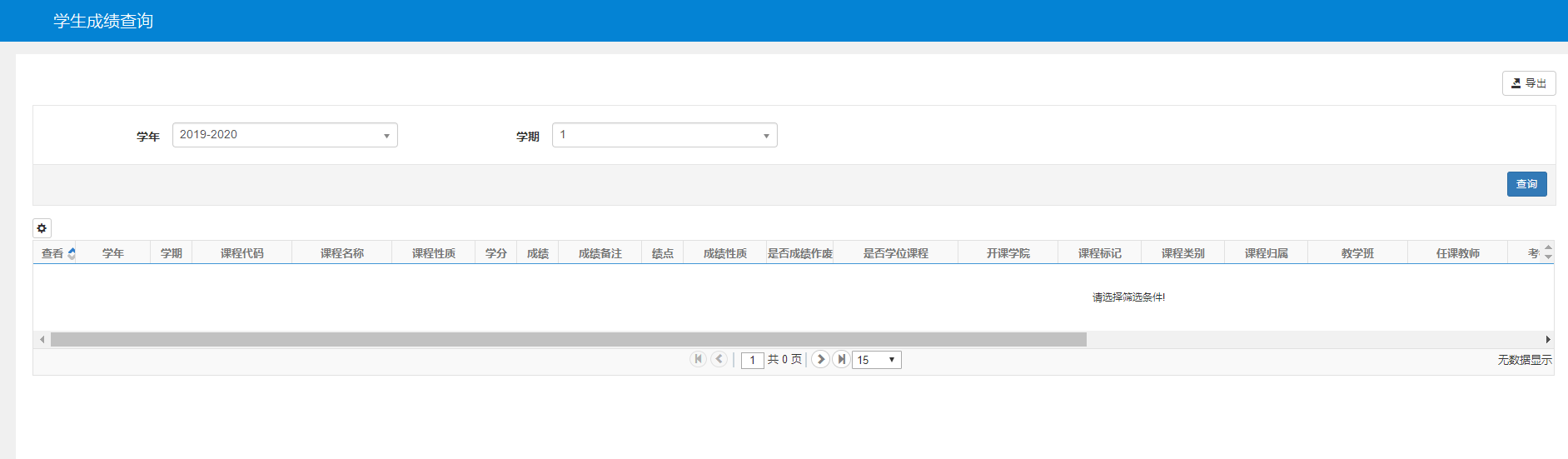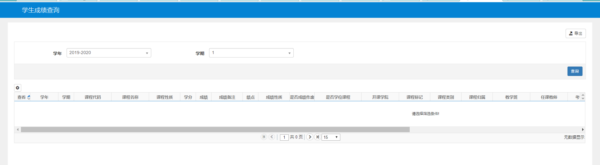建议:应当在进行应用选择时,查询界面就显示全部学年的成绩,然后再让用户进行筛选。