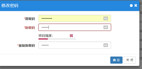 建议:应当在显示密码较弱的时候,提示用户密码应当包含数字、英文或字符等两种元素以上