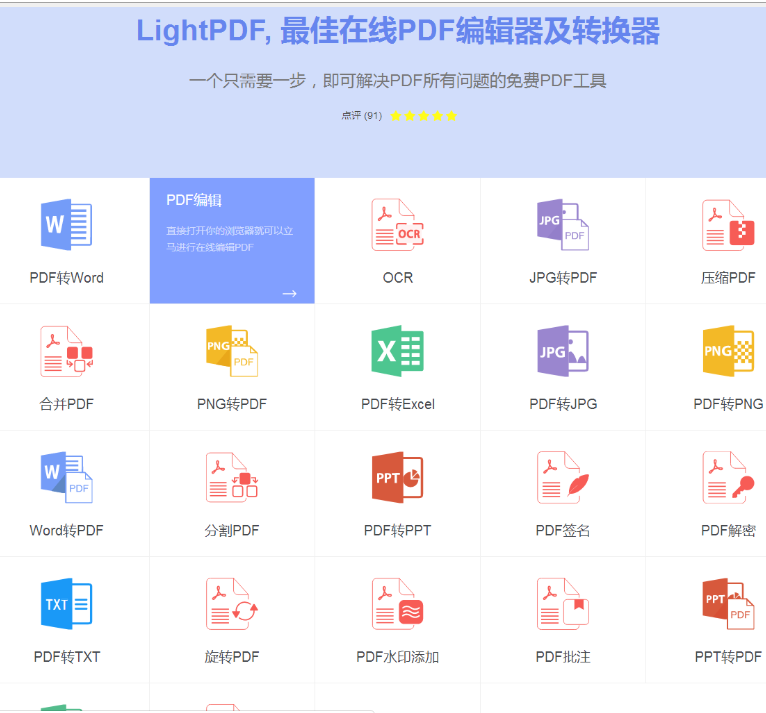 2、 LightPDF: https://lightpdf.com/zh/