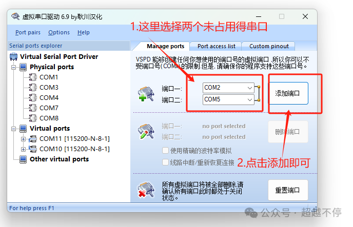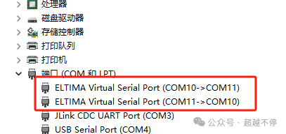虚拟串口建立连接之后,这两个串口默认就是互通的;