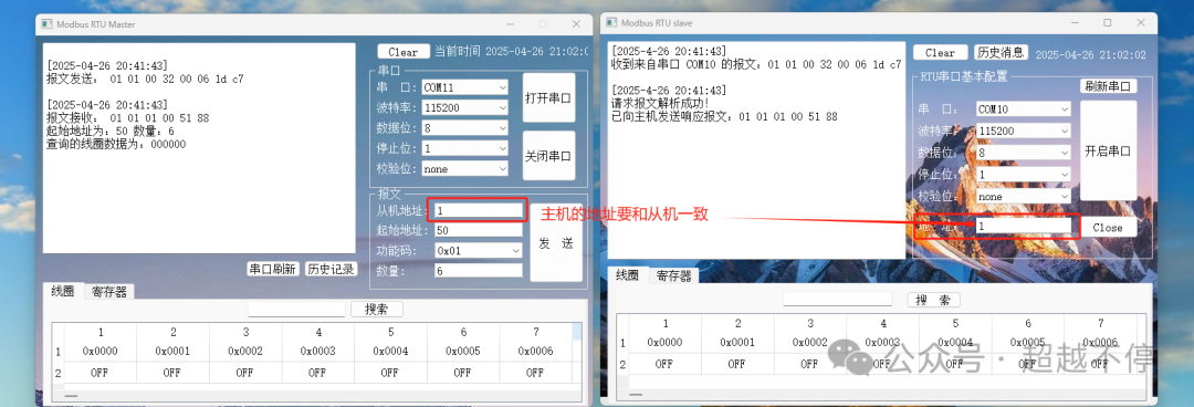 主站和从站工具是通过虚拟串口得方式进行互联;