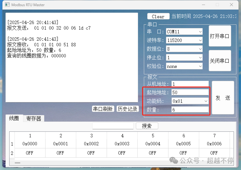 点击发送 从机就会把对应寄存器的数据发送回来;