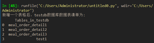 print('新增一个表格后,testdb数据库数据表清单为:','\n',formlist1)