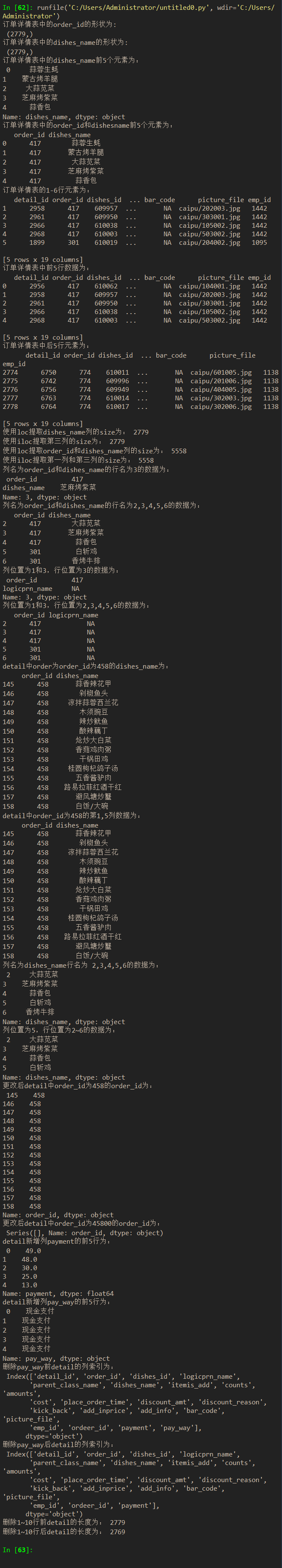 print('订单详情表中的order_id和dishesname前5个元素为:','\n',orderDish)