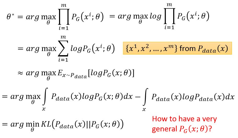 下面我们就可以最大化似然函数 L 而求得离真实分布最近的生成分布(即最优的参数θ):