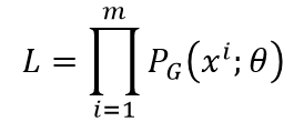 现在我们可以从训练集抽取一组真实图片来训练 P_G(x;θ) 分布中的参数θ使其能逼近于真实分布。因此,现在从 P_data(x) 中抽取 m 个真实样本 {𝑥^1,𝑥^2,…,𝑥^𝑚},其中符号「^」代表上标,即 x 中的第 i 个样本。对于每一个真实样本,我们可以计算 P_G(x^i;θ),即在由θ确定的生成分布中,x^i 样本所出现的概率。因此,我们就可以构建似然函数: