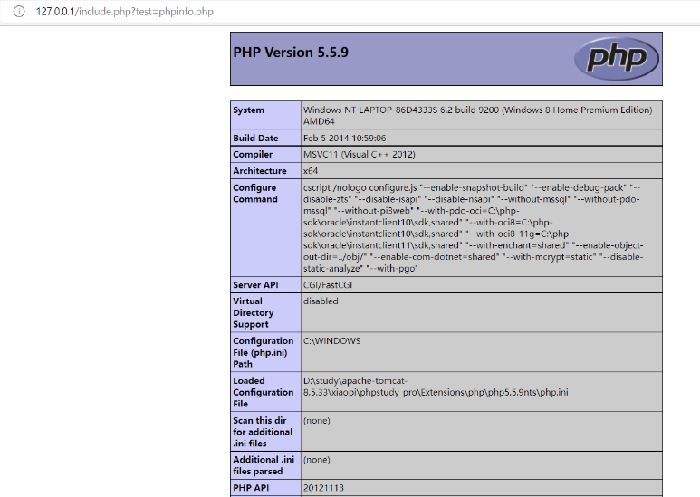 利用文件包含,我们通过include函数来执行phpinfo.php页面,成功解析