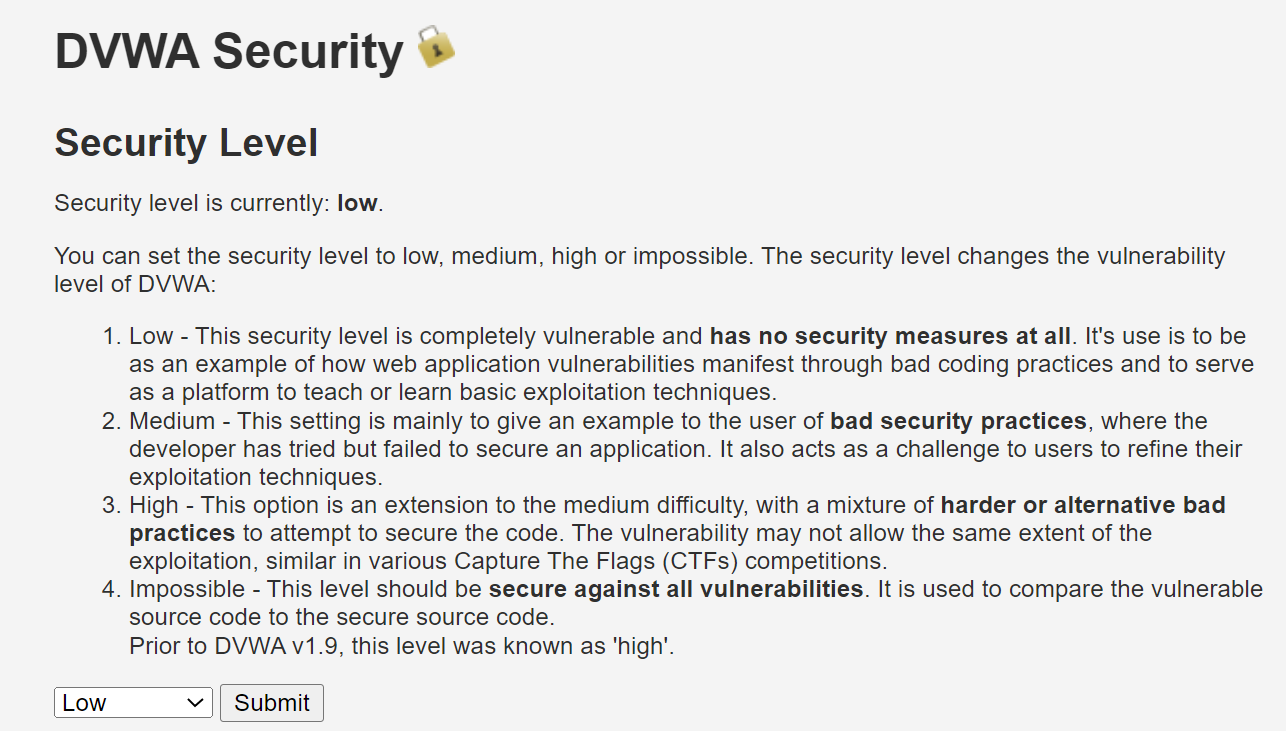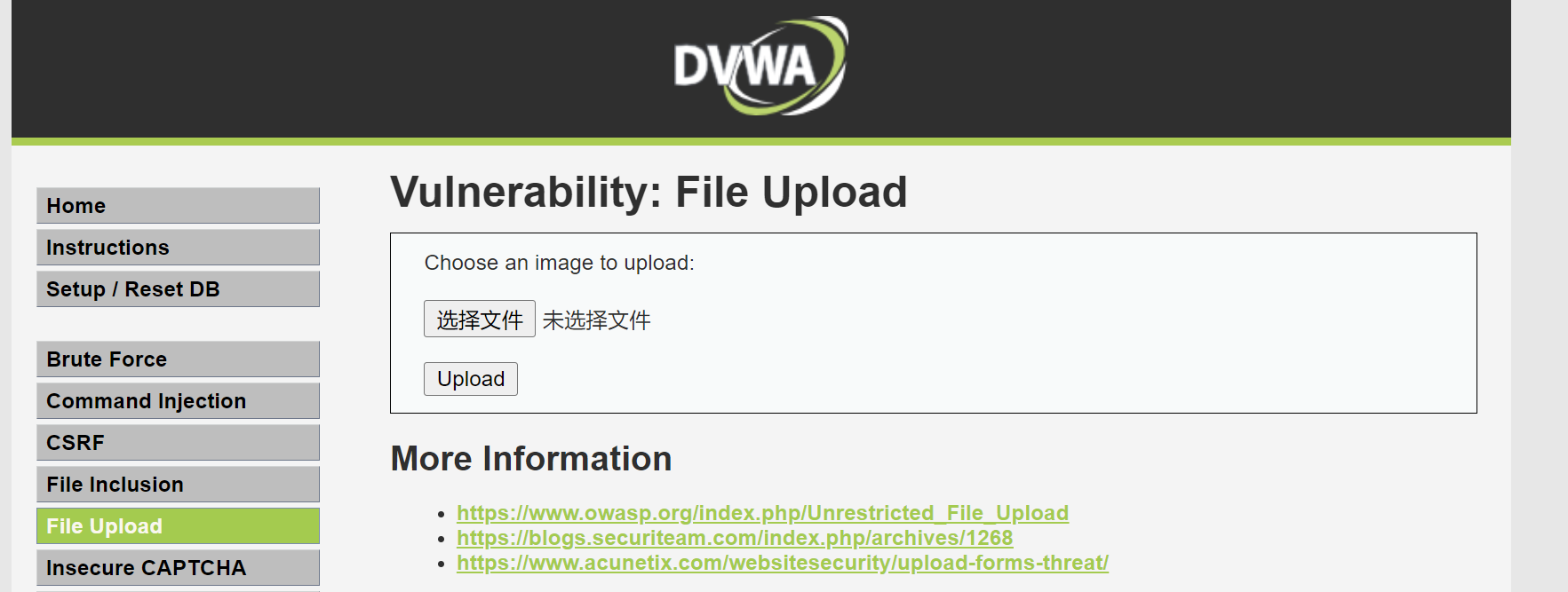 安装好DVWA,我们将Security Level选择low,编辑一个图片木马