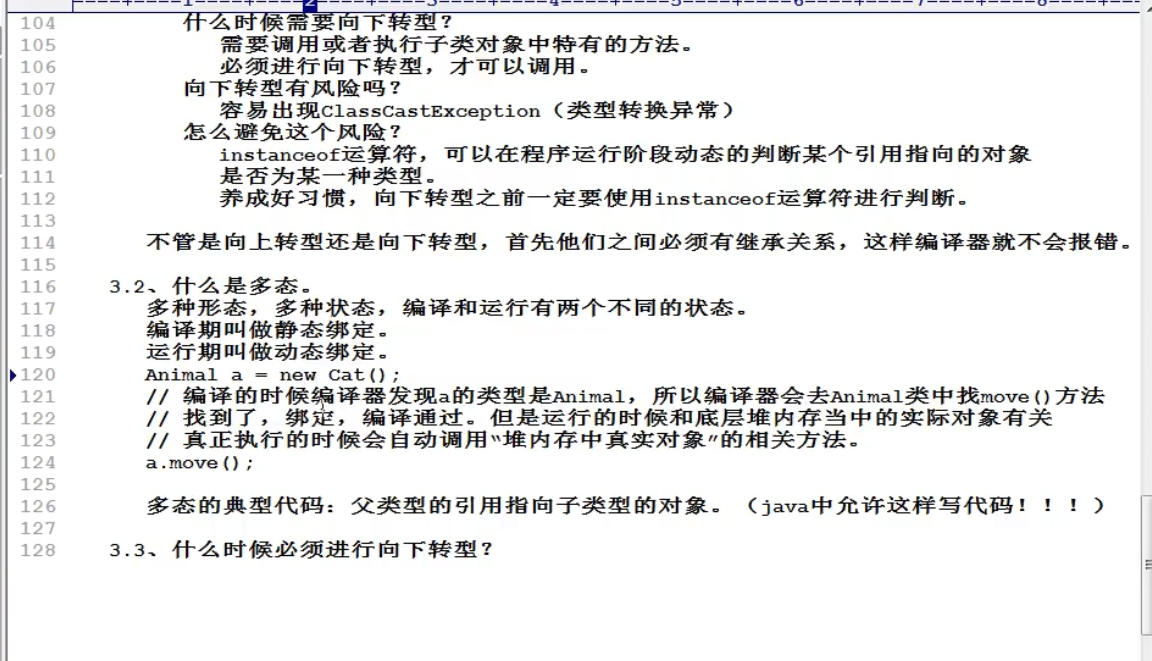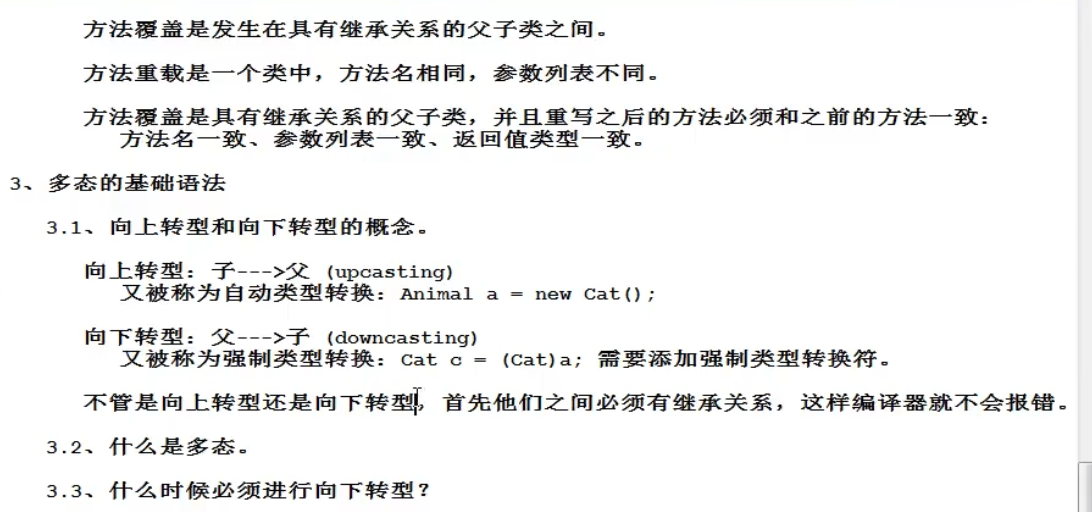 下转型的前提是父类对象指向的是子类对象(也就是说,在向下转型之前,它得先向上转型)