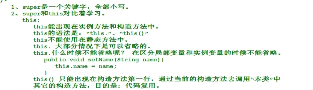 6.this是不能使用在 静态方法中的 ,this() 只能使用在构造方法的第一行中