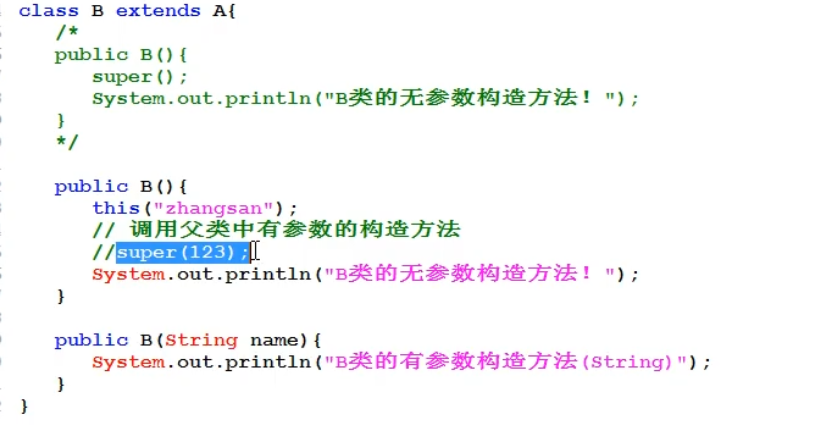 A类是继承B类,A类构造方法在创建的时候,就会默认在第一行加上 super(); ,意思为继承 父类的构造方法