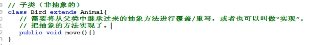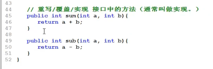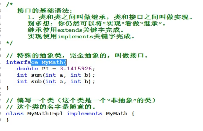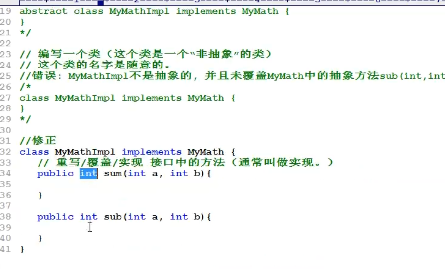 22.子类(非抽象类)继承接口的时候,需要对子类中的方法进行重写,并且需要注意 子类中方法的名称,在接口中可以省略 public ,但是在子类的方法名中是不能省略的