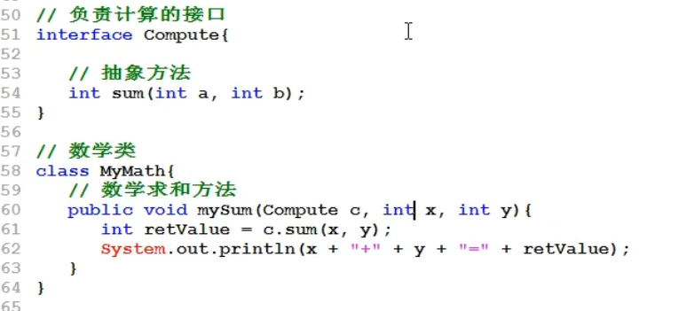 所以这里第60行就不要感到不解,因为接口也是一种数据类型,也可以相互之间传值的