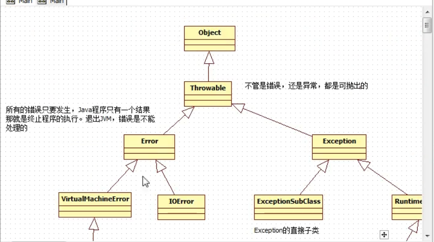Error: 所有的错误只要发生,Java程序只有一个结果,那就是终止程序的执行,退出JVM,错误是不能处理的