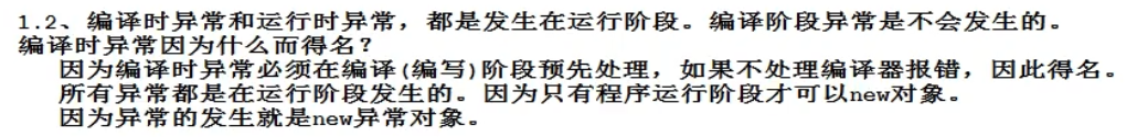 编译时异常要求程序员在编写程序阶段必须进行处理,否则没法运行