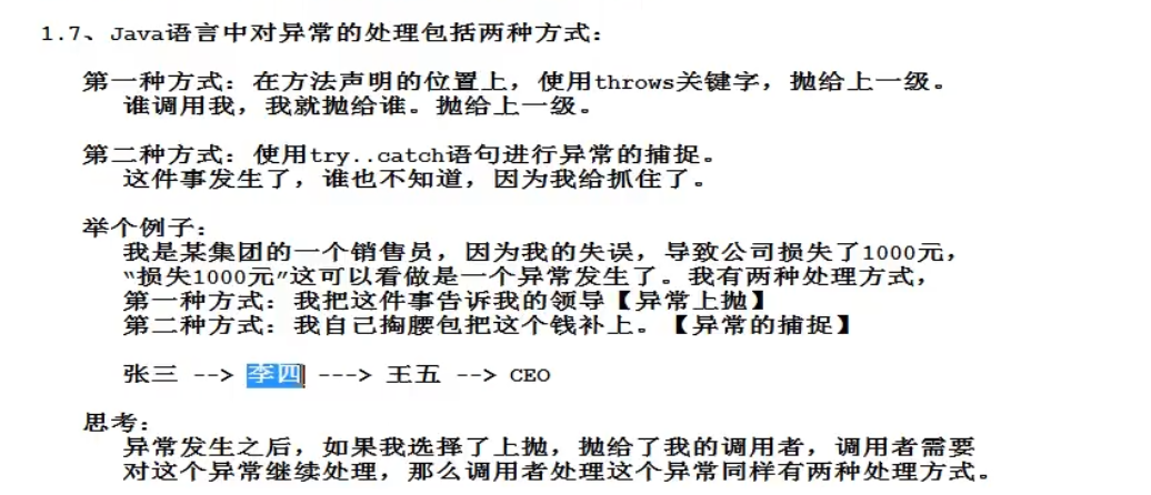 第二种是 ExceptionSubclass 编译时异常(所有 ExceptionSubclass以及其子类都属于编译时异常)