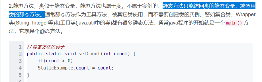 《别记混了》非静态方法既可以访问静态方法又可以访问非静态方法,而静态方法只能访问静态数据方法。