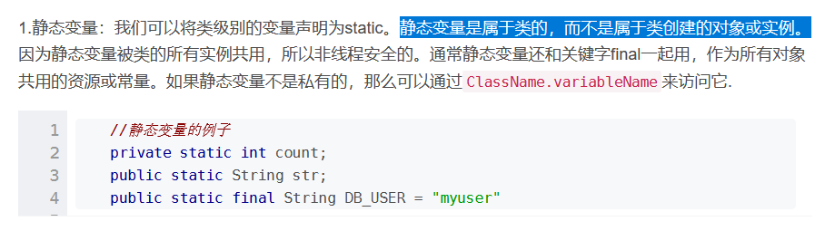 4.静态变量是 属于类的,