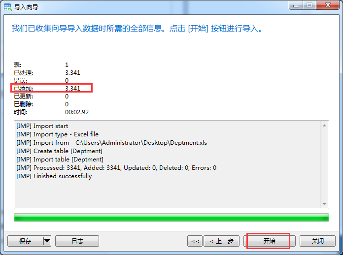 5)设置表的字段属性,后面的几步一路选择就好,在最后点击开始按钮进行导入