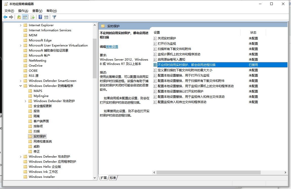 5。打开“实时保护”,将里面的“不论何时启动实时保护,都会启动进程扫描”这一配置项设置为“已禁用”(此步骤最关键);