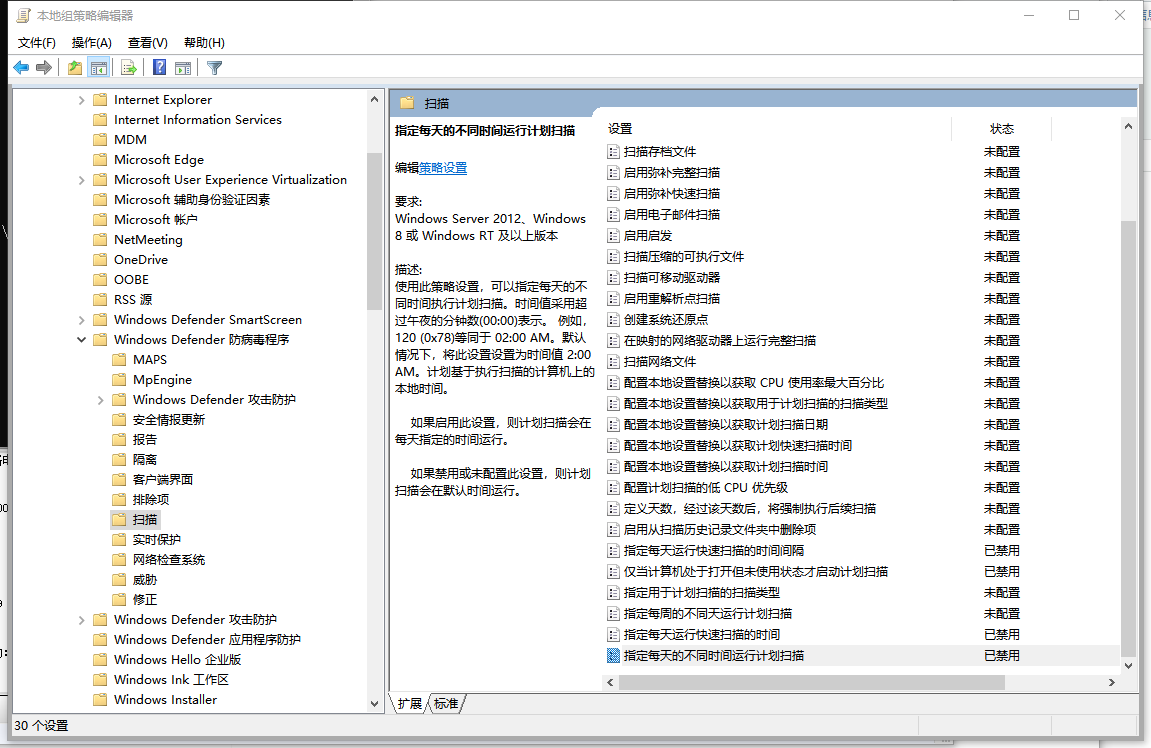 6。打开“扫描”,将里面的以下几项设置为“已禁用”: