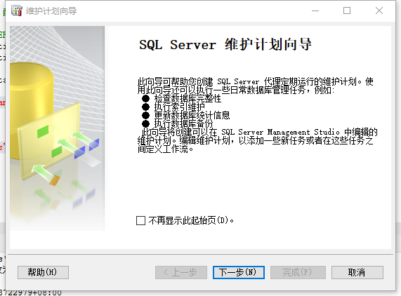 在出现的“SQL Server维护计划向导”界面中点击“下一步”