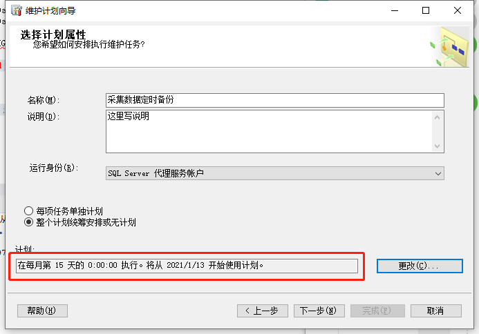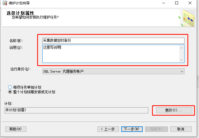 在出现的界面中把名称和说明写上。然后点击“更改”设顶备份计划