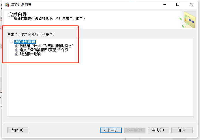 在出现的“完成该向导”界面中会看到设置备份的详细信息。