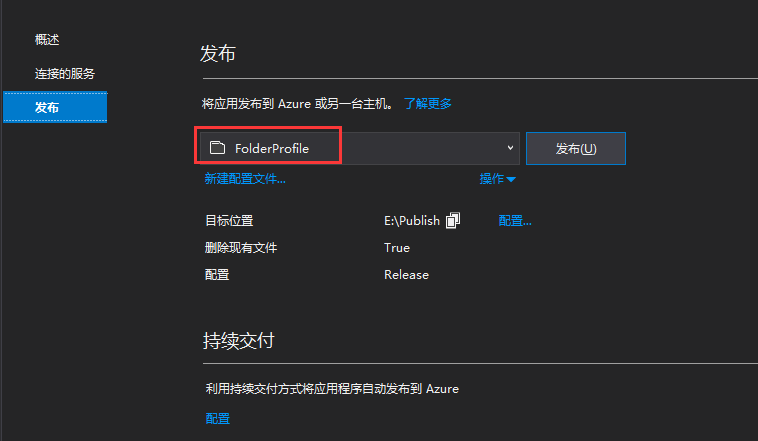 这里的配置实际上会保存在:项目目录\Properties\PublishProfiles\FolderProfile.pubxml 这个文件中,配置了这个参数后面就会调用这个配置文件中的各项数据,比如发布的位置,是否删除现有文件等等。
