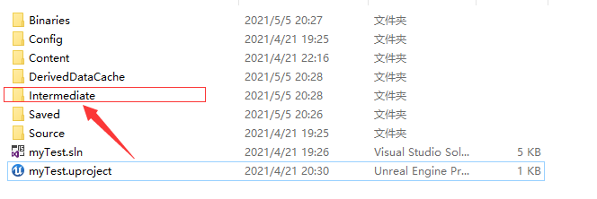 解决方法,关闭UE4项目工程,找到项目文件夹本地位置,删除Intermediate文件夹,重新打开项目进行打包。