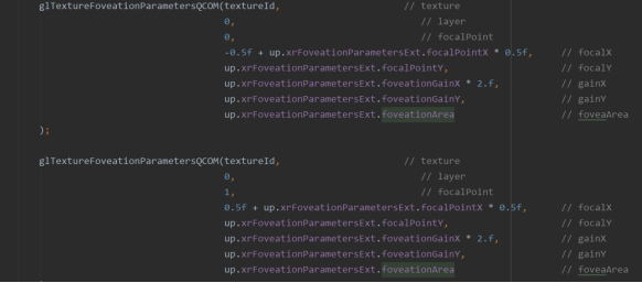 然后需要在render之前,调用高通扩展函数glTextureFoveationParametersQCOM。