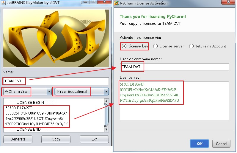破解操作:java命令启动KeyMaker.jar包(cmd进入jar包目录执行命令:java -jar KeyMaker.jar,即可出现如下界面),然后选择对应的版本生成key,对应复制到pyCharm软件即可,如下所示: