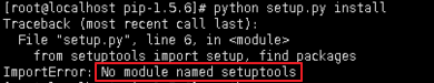 注意点:安装pip模块前需要先安装setuptools,如果未安装会出现如下报错信息: