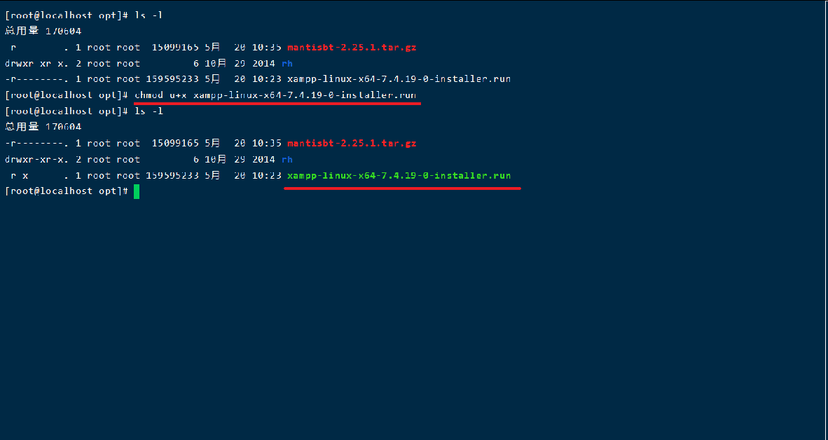 chmod u+x xampp-linux-x64-7.4.19-0-installer.run