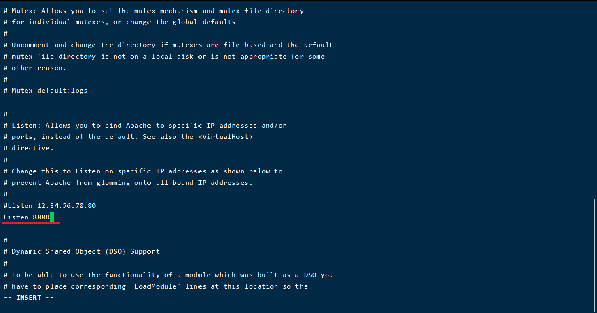 # / Listen 80(直接输入后回车就搜索到,再按insert键修改,修改完按esc键退出编辑,输入:wq!按回车保存并退出
