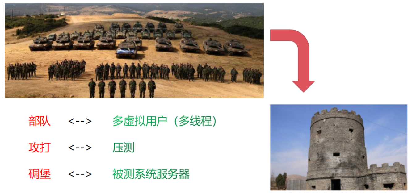 通过模拟真实的生产环境,制定性能测试计划,使用压测工具模拟不同用户发起不同的压力访问被测系统,根据需求和计划中的性能指标分析是否满足性能的需求