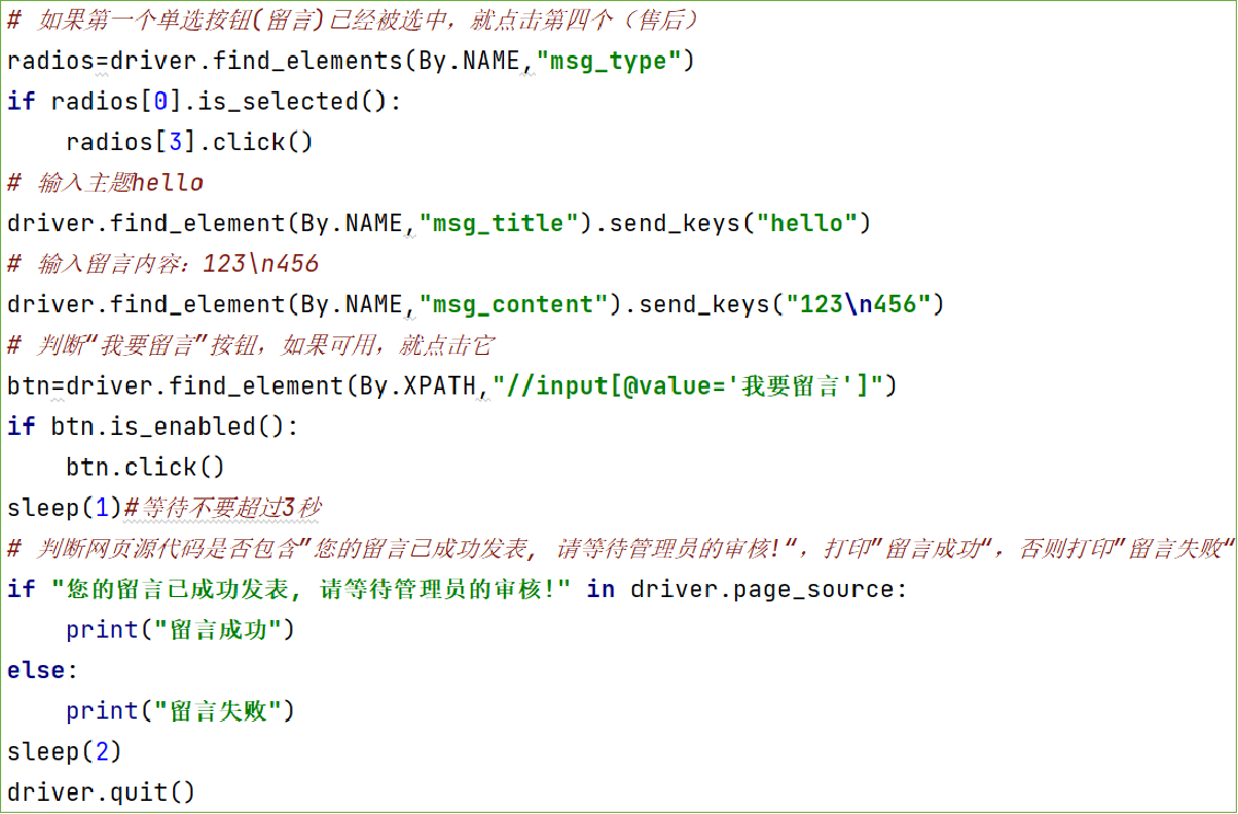 如果网页源代码中包含”您的留言已成功发表, 请等待管理员的审核!",打印”留言成功",否则打印”留言失败"。