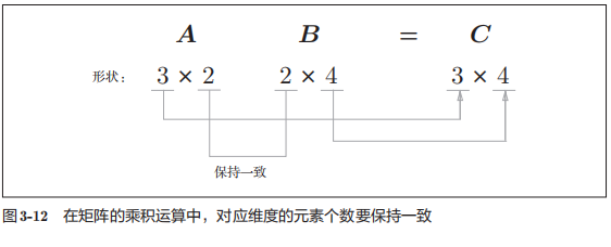 # 重点:矩阵A的第1维的元素个数(列数)必须和矩阵B的第0维的元素个数(行数)相等,如不相等,则无法计算