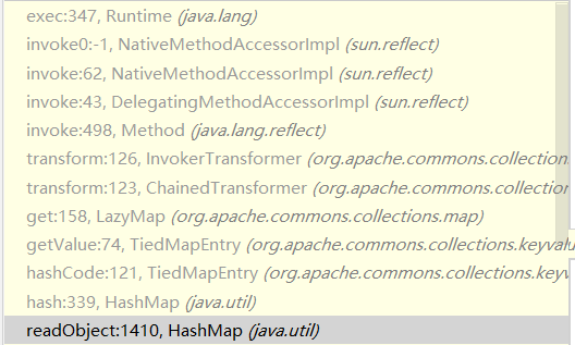 HashMap#readObject --> HashMap#hash --> key.hashCode --> TiedMapEntry#getValue