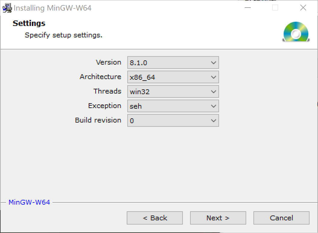 这里采用孟宁老师推荐的Mingw-w64/GCC作为编译器进行后期的编译。相关配置按文档的建议设置如下: