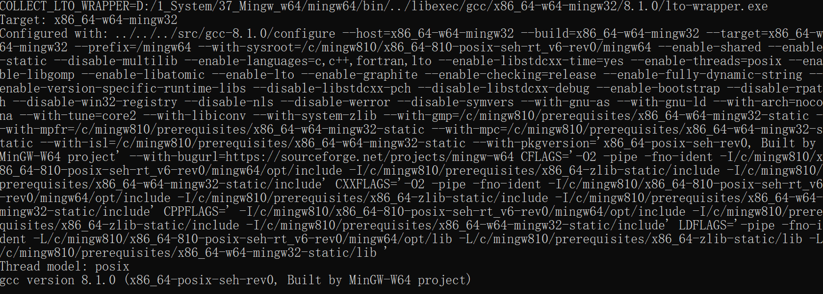 安装好后注意添加环境变量,之后我们可以打开CMD,执行gcc -v来检测是否安装成功。如下图所示,出现了版本号,说明安装编译器成功。