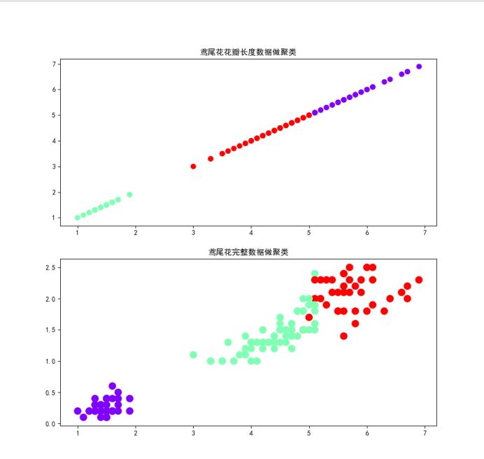 2). *自主编写K-means算法 ,以鸢尾花花瓣长度数据做聚类,并用散点图显示。(加分题)