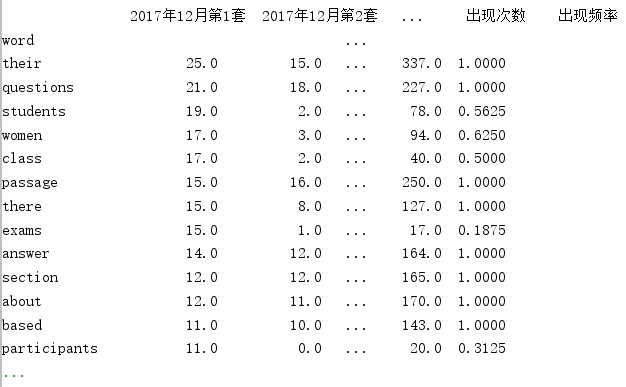 数据为若干个英语四级历年真题word文档,将其中单词划分为高、中、低频3类。使用sklearn库的kmeans函数进行预测。
