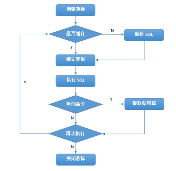 无论 Java 还是 PLSQL,每一条 SQL 语句在客户端都表现为一个上下文区域,或者一个游标, 如下图,是对一条 SQL 语句游标的生命周期的简单描述。