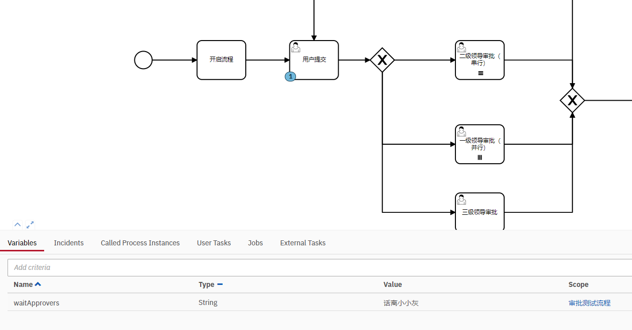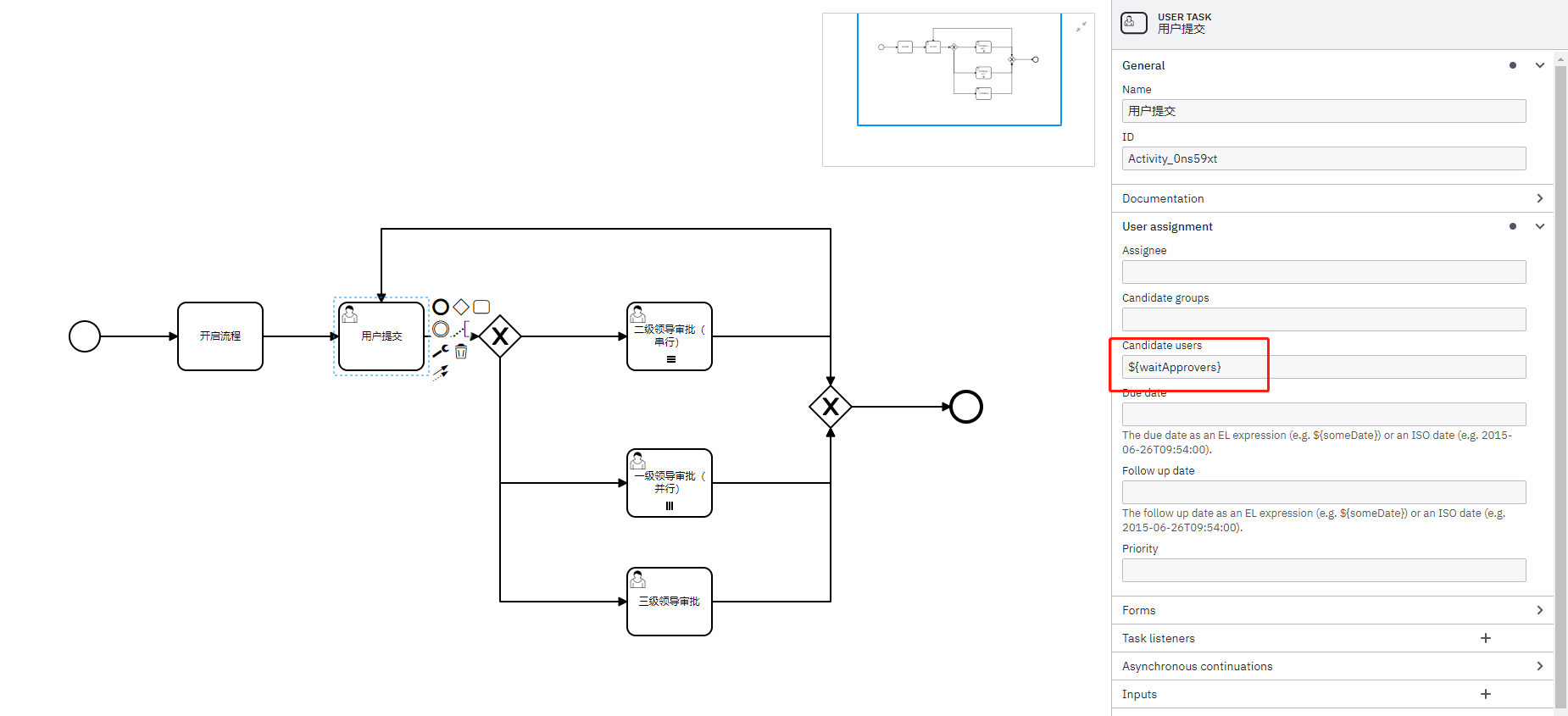 在前几张的拓扑图的基础上进行修改,待办方式应该有很多种,这里试验一种Candidate users