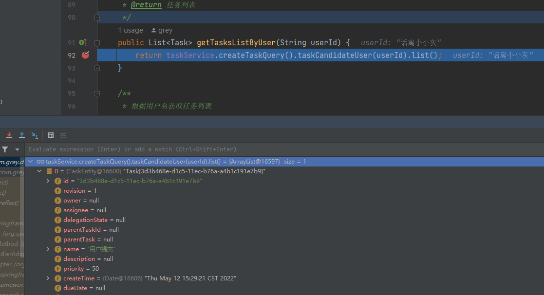 我们可以发现,已经可以通过用户信息获取到对应的task了