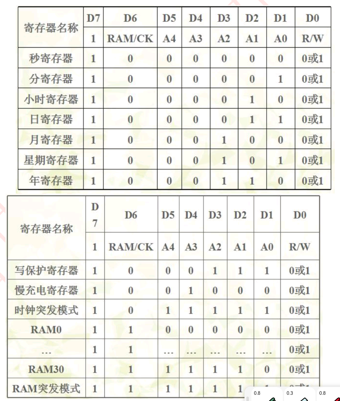 各寄存器的控制字:(D0位为1表示读,为0表示写)