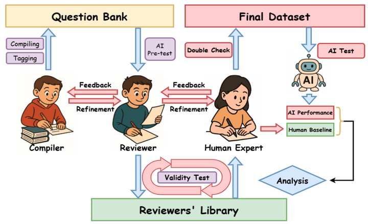 3、数据集难度分布不合理 :现有基准中,问题往往集中在高难度水平,导致模型在这些问题上的表现接近于零,降低了评估的区分能力和样本效率。